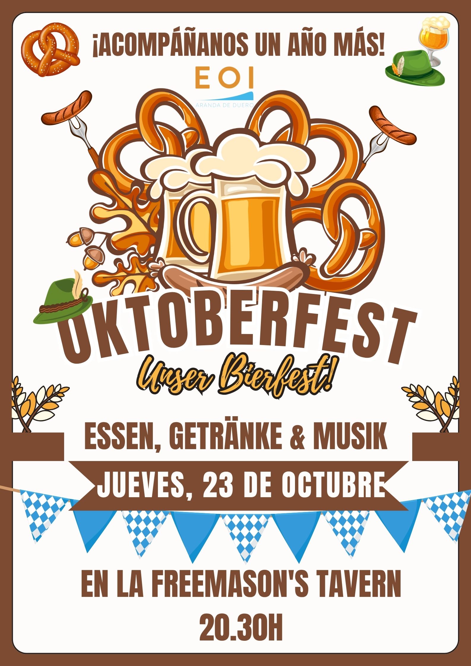 Volvemos a celebrar el Oktoberfest con nuestros alumnos de la EOI, sus profesores y todos los amigos que quieran acercarse el próximo JUEVES 23 DE OCTUBRE a la Freemason's Tavern.