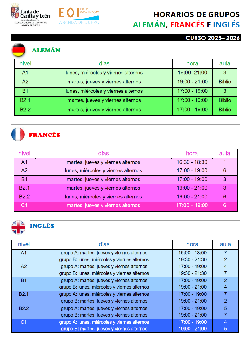 Curso 2025-2026 » Horarios y grupos